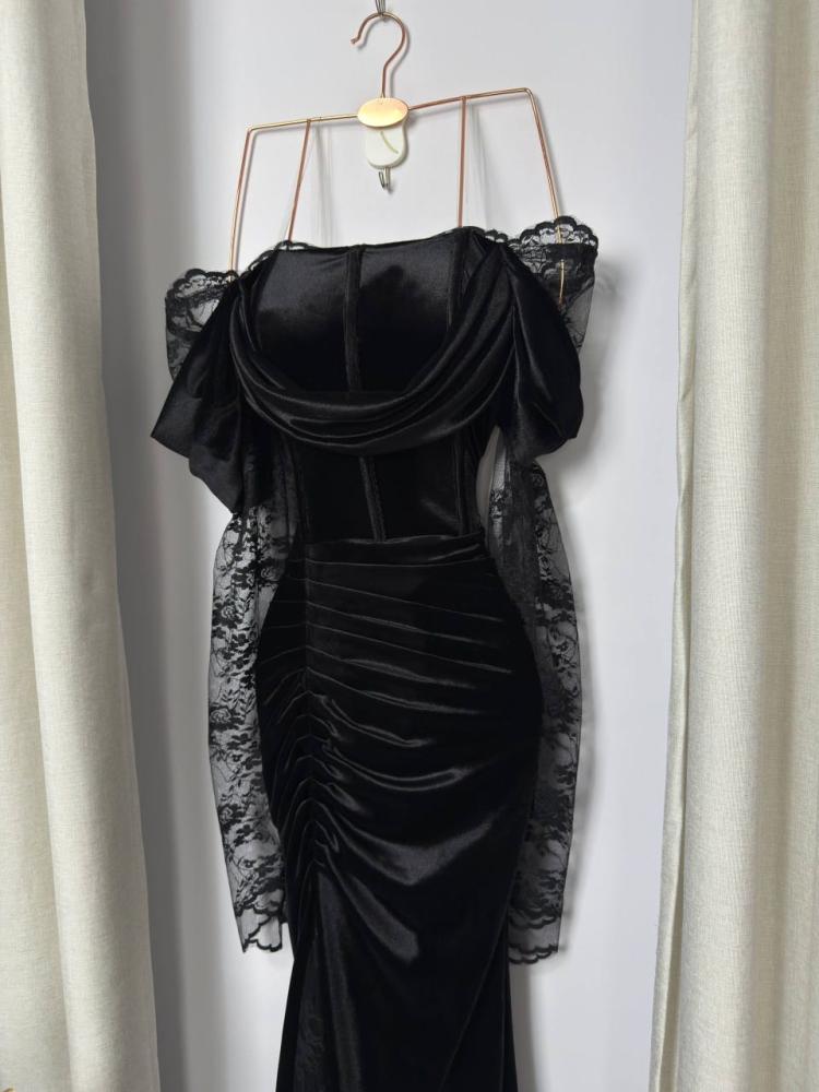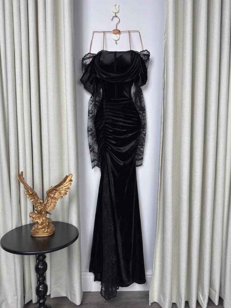 - الخامة: مخمل فاخر ودانتيل ناعم