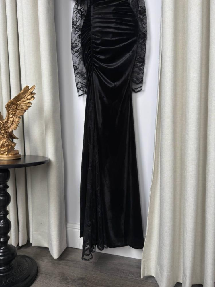- أكمام دانتيل طويلة تضيف لمسة من الفخامة والرقي الكلاسيكي.